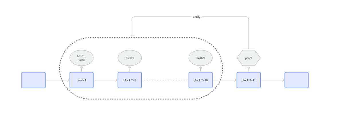 • Assuming that the first prover submits the hash in the T-th block, within the T+10th block, other provers can also accept hash submissions, and there is no limit on the number. In blocks T+11 and after, new prover submission hashes are no longer accepted. 2. Submit ZKP